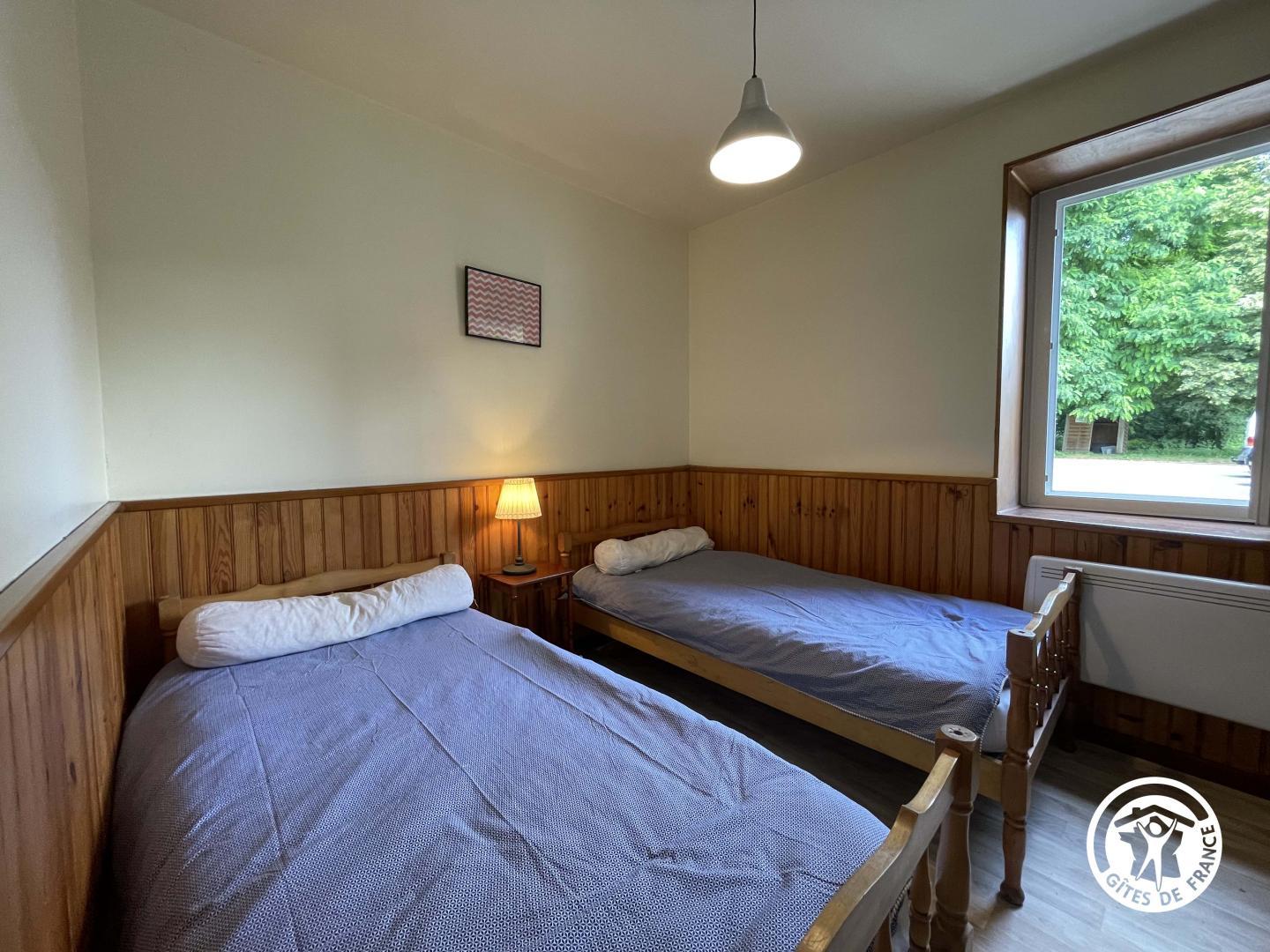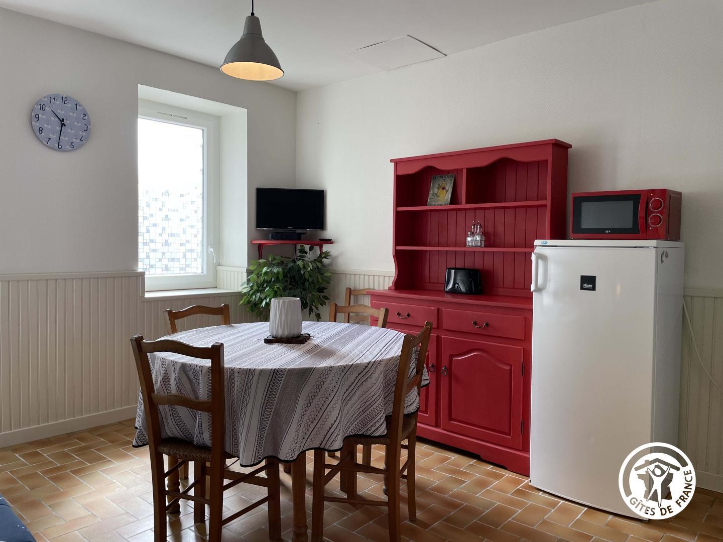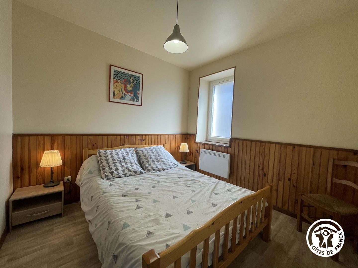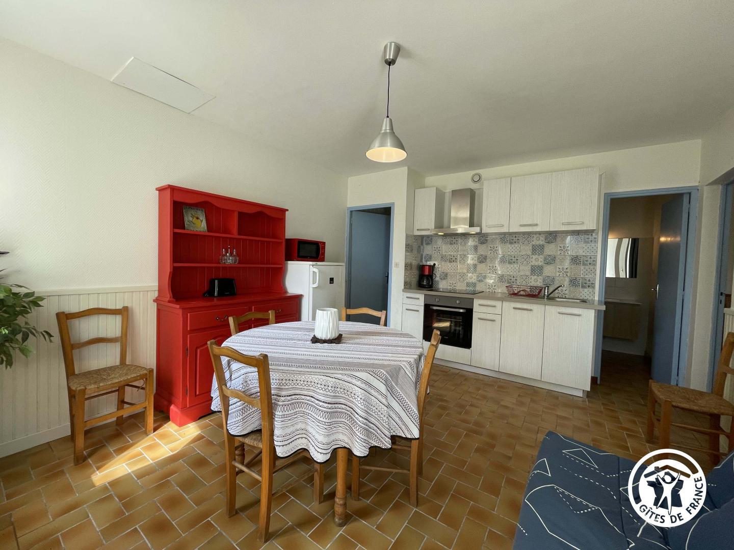 Cet appartement, situé au rez-de-chaussée d'une maison mitoyenne avec un autre gîte à l'étage, dispose d'un séjour avec coin cuisine, deux chambres, et une salle d'eau. Le terrain clos, partagé avec d'autres gîtes, est parfait pour des moments de détente. Tout est prévu pour un séjour agréable : parking communal, terrain de jeux, et équipements communs comme lave-linge et barbecue.