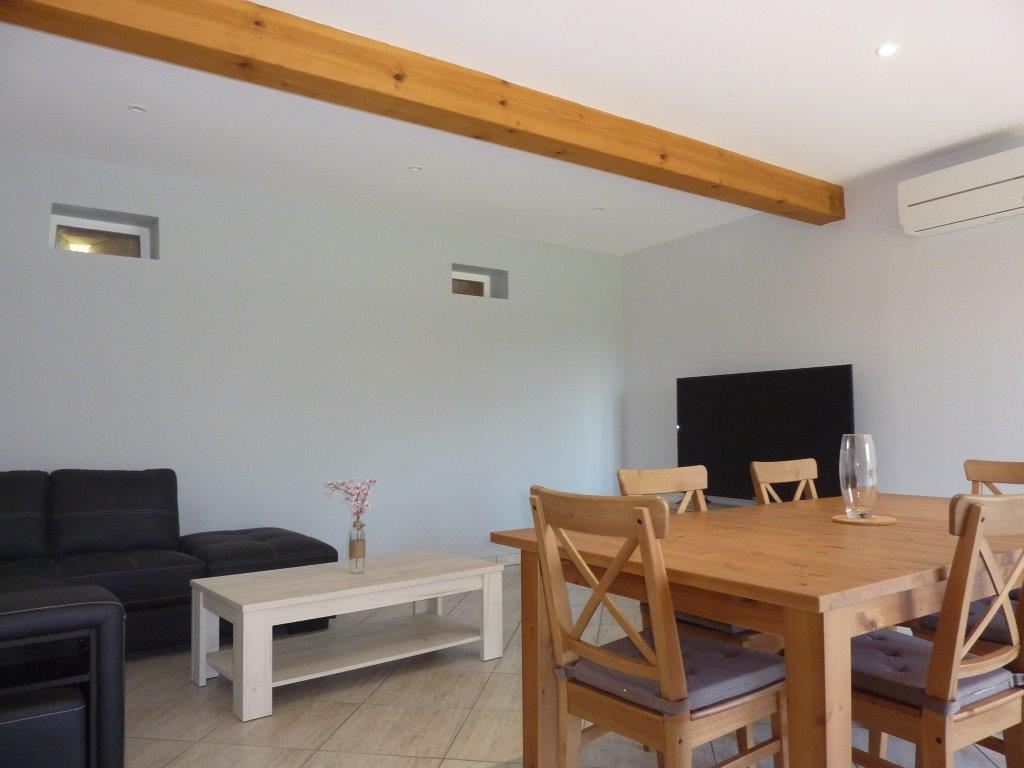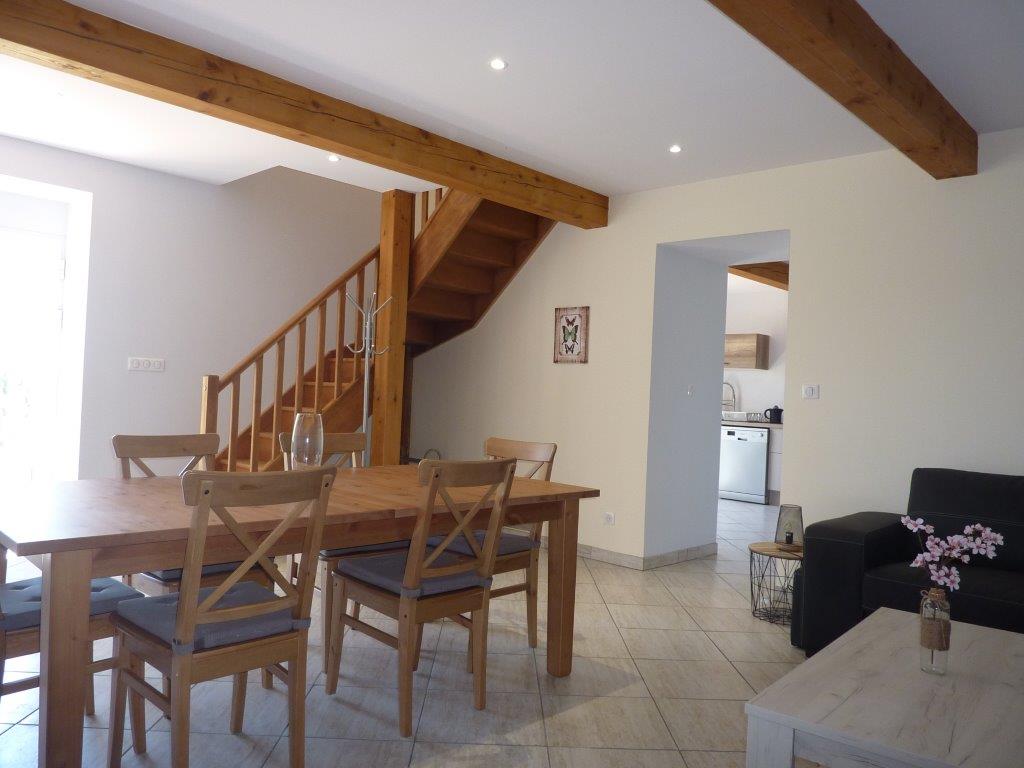 Au rez-de-chaussée, vous trouverez un grand salon avec espace repas, une cuisine intégrée, une buanderie (lave-linge et sèche-linge) et un WC. À l’étage, trois chambres confortables avec lit double (160 cm) et salle d’eau privative avec WC garantissent un séjour agréable. Le terrain clos de 800 m² comprend un salon de jardin, un barbecue et un parasol pour profiter de l’extérieur. Un parking privatif est à votre disposition.