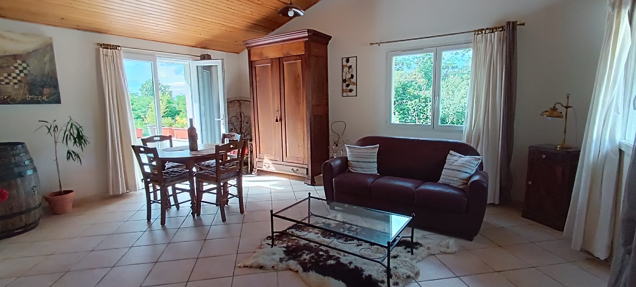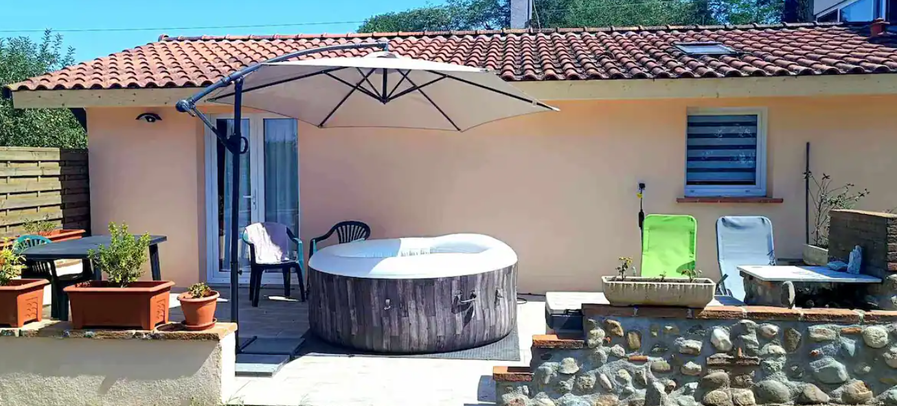 Vous pourrez aussi profiter d'un salon de jardin, et des bains de soleil mis à votre disposition. Le parking gratuit et privé avec un accès par le portail automatique. Premier commerce à trois minutes à pied, autoroute cinq minute en voiture.
