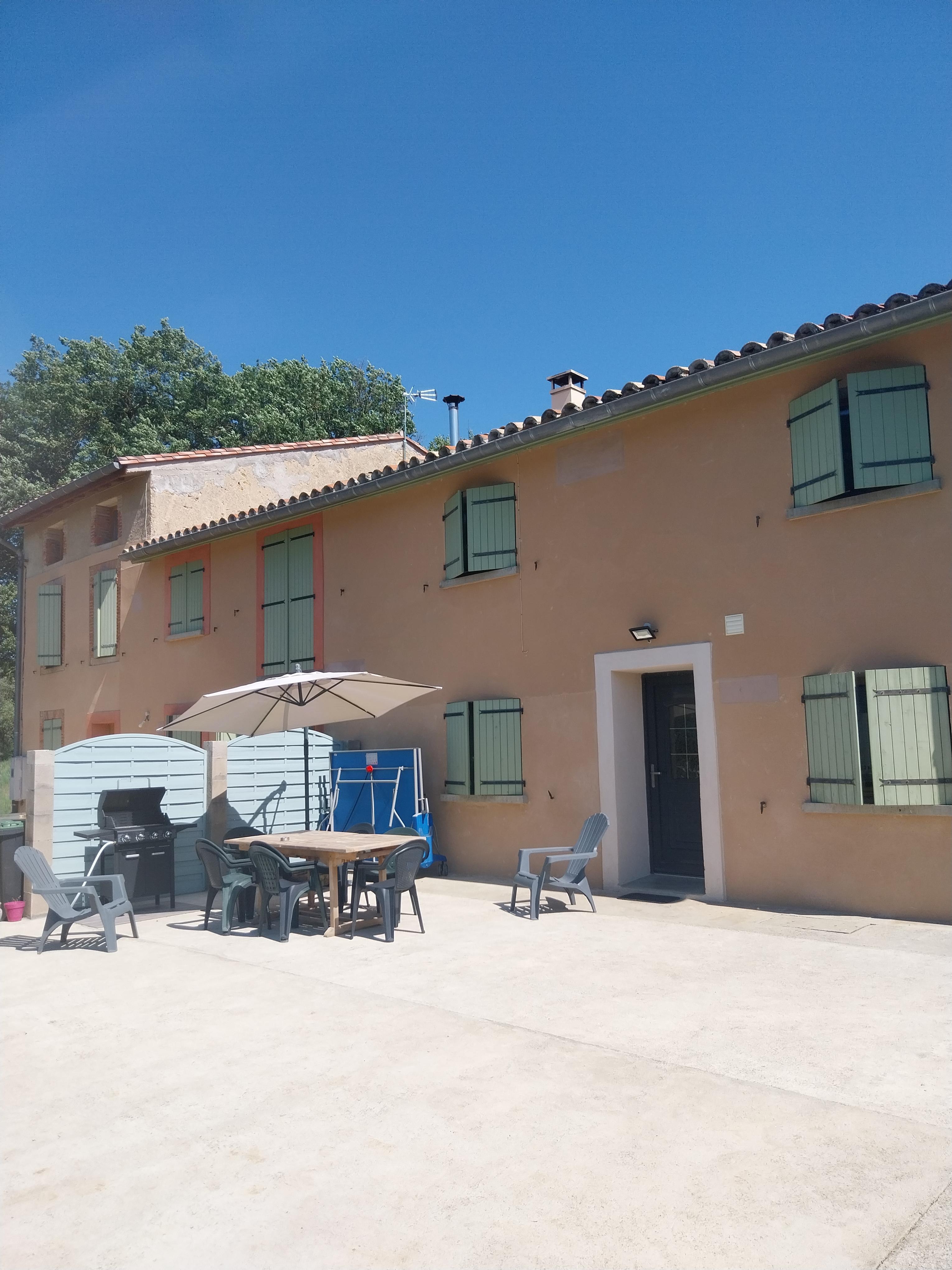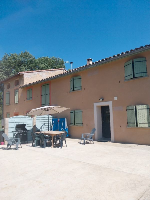 Gîte de charme à Gaudiès, corp de ferme en pierre rénové avec terrasse, piscine et équipements complets, idéale pour un séjour paisible à proximité des Pyrénées.