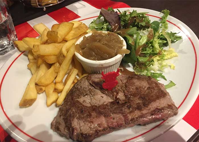 Les serveurs en tenue de bouchers vous accueillent dans une ambiance chaleureuse et décontractée et ponctuent volontiers leur service de joyeuses apostrophes.
