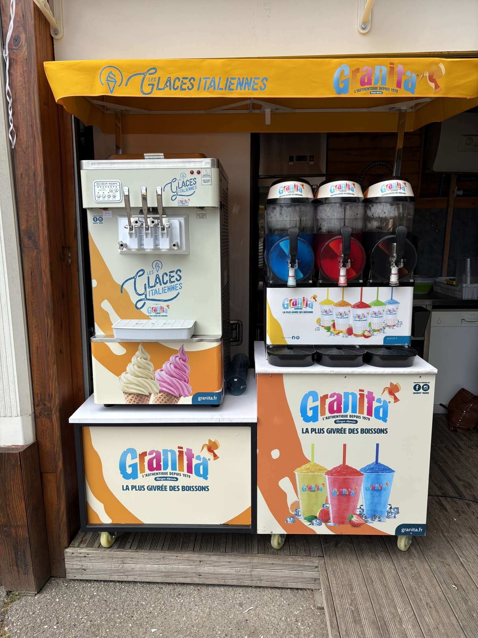 Snack proposant pizzas, burgers avec frites maisons, boissons chaudes et froides ainsi que des desserts et glaces.