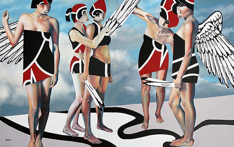 Ses œuvres, influencées par des figures comme Picasso, Miró et Kandinsky, oscillent entre abstraction et figuration. Il explore des thèmes profonds tels que le mouvement, la mythologie et l'identité.